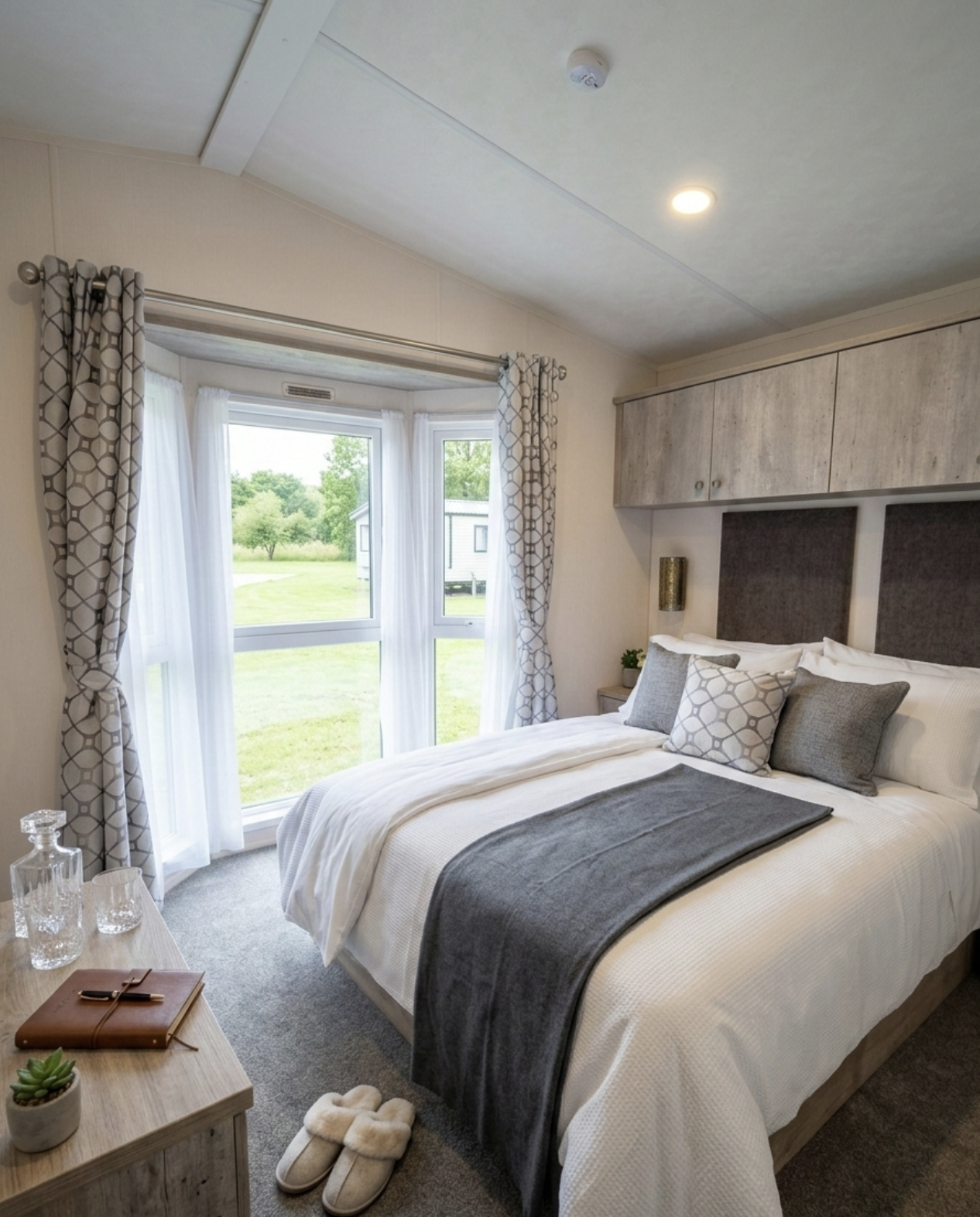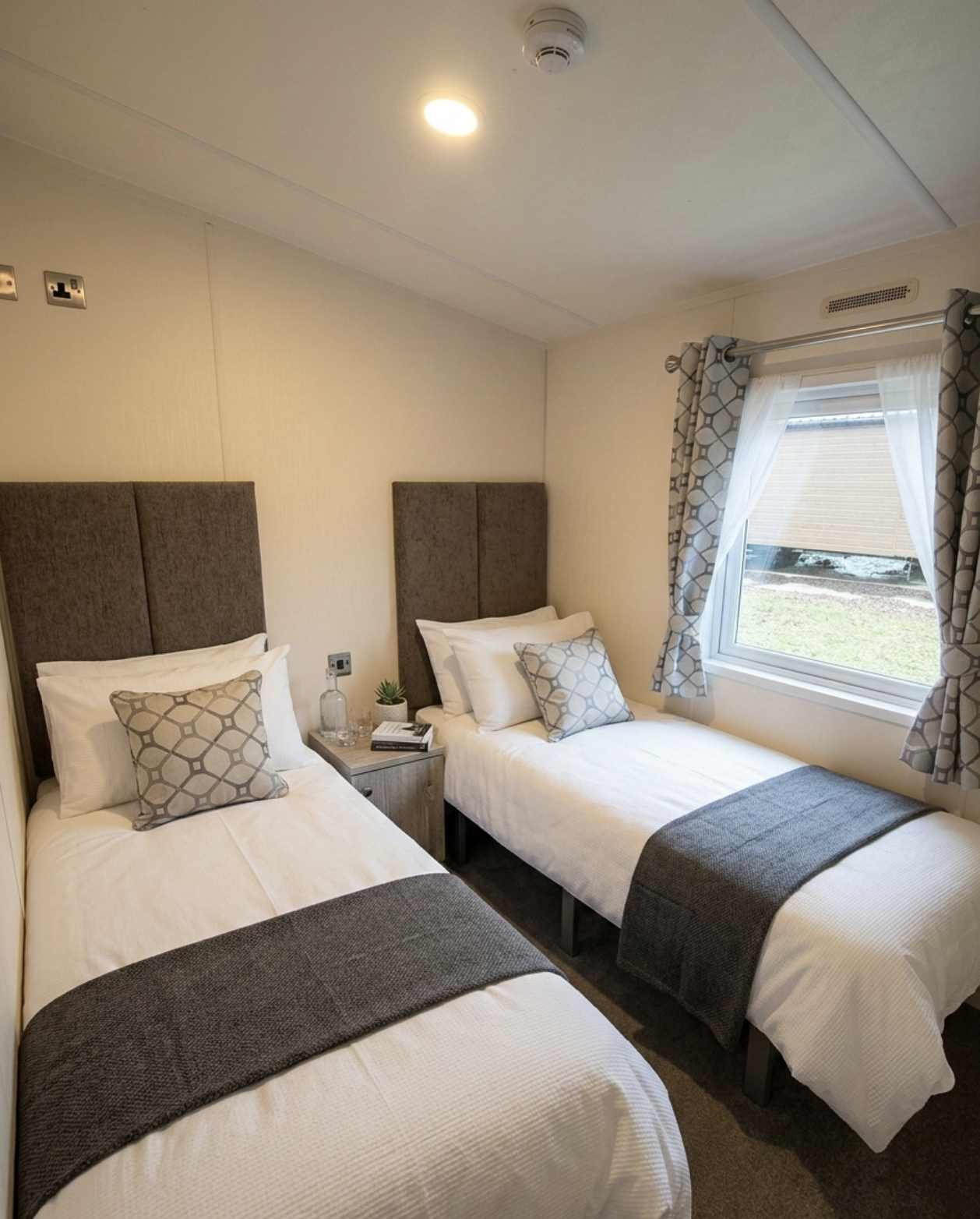 The twin rooms offer generous space and storage, making this model ideal for families or visiting guests.
