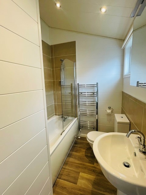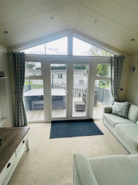The open-plan living area feels bright and inviting, with a contemporary kitchen flowing naturally into the dining and lounge spaces. Two well-proportioned bedrooms and a stylish shower room make this home practical as well as comfortable, while private decking adds the perfect spot to relax outdoors.